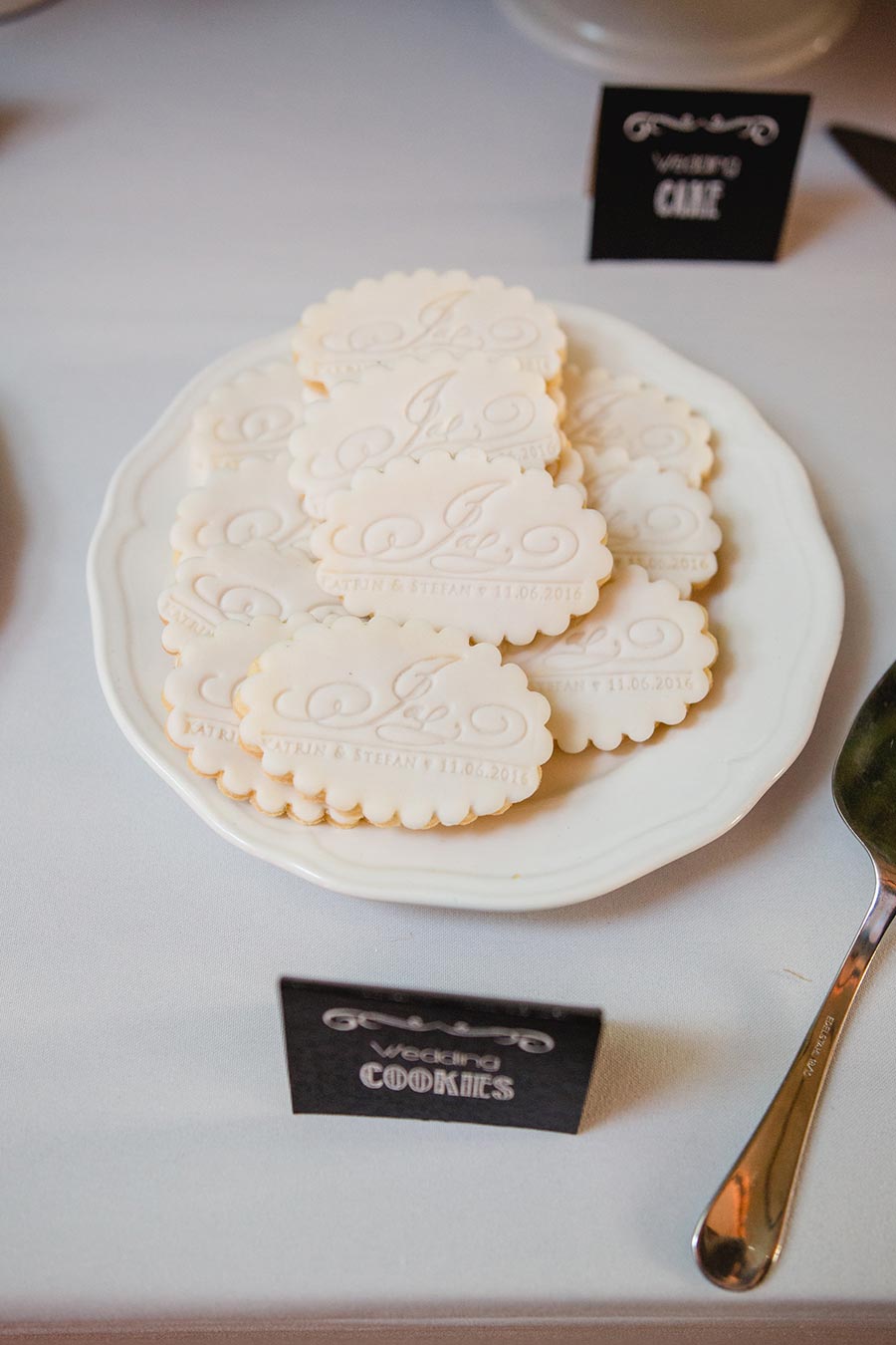Beim Sweet Table kommen wir echt ins schwärmen. Es gab so viele unterschiedliche Leckereien wie Cakepops im Braut- und Bräutigam-Look, verschiedene Cupcakes und sogar personalisierte Kekse zum naschen. Als ob das noch nicht genug wäre, gab es nicht nur eine Hochzeitstorte, sondern gleich mehrere wobei nur eine der offizielle „Wedding cake“ war. Das beste am Sweet Table: die Braut hat ihn selber gemacht. Die Backkünste von Katrin lassen sich auch auf ihrer Webseite bewundern.